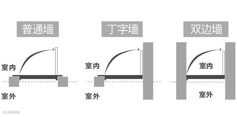 决定好外开还是内开以后,还要考虑墙体问题,如果是普通墙壁的话,母门安装在左右两侧都可以;如果是丁字墙的话,母门最好安装在墙壁突出的一侧;双边墙的话,就看你的开门习惯了,无论是安装在左侧还是右侧,都是OK的。
