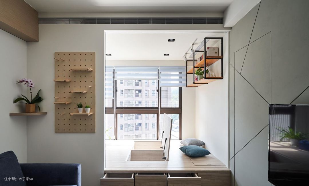 客厅打造的这个榻榻米不仅可以玩耍,储物功能强大,孩子的各种玩具都可以放在里面。这样的设计会让客厅显得很干净整洁。