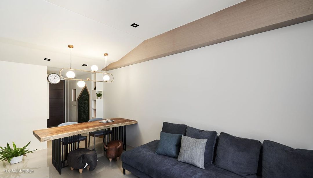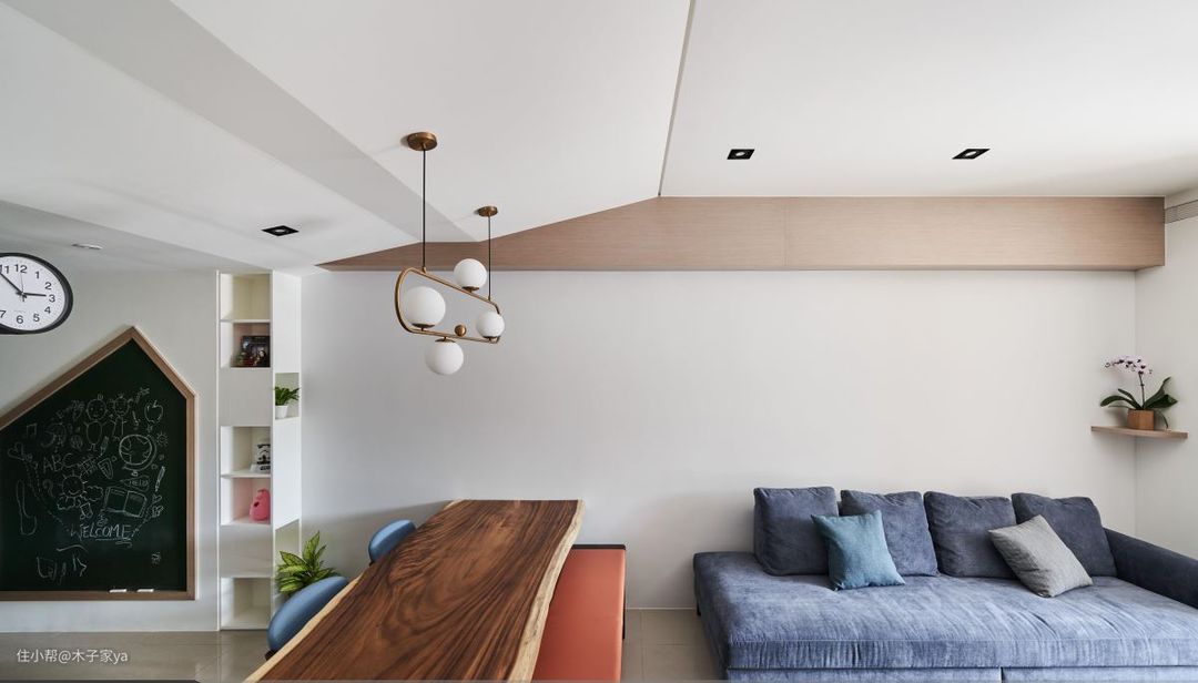 客厅不大,但是没有放太多的家具,除了必备的沙发和餐桌,尽可能让空间留空,可以随时给孩子跑走不会磕碰到。