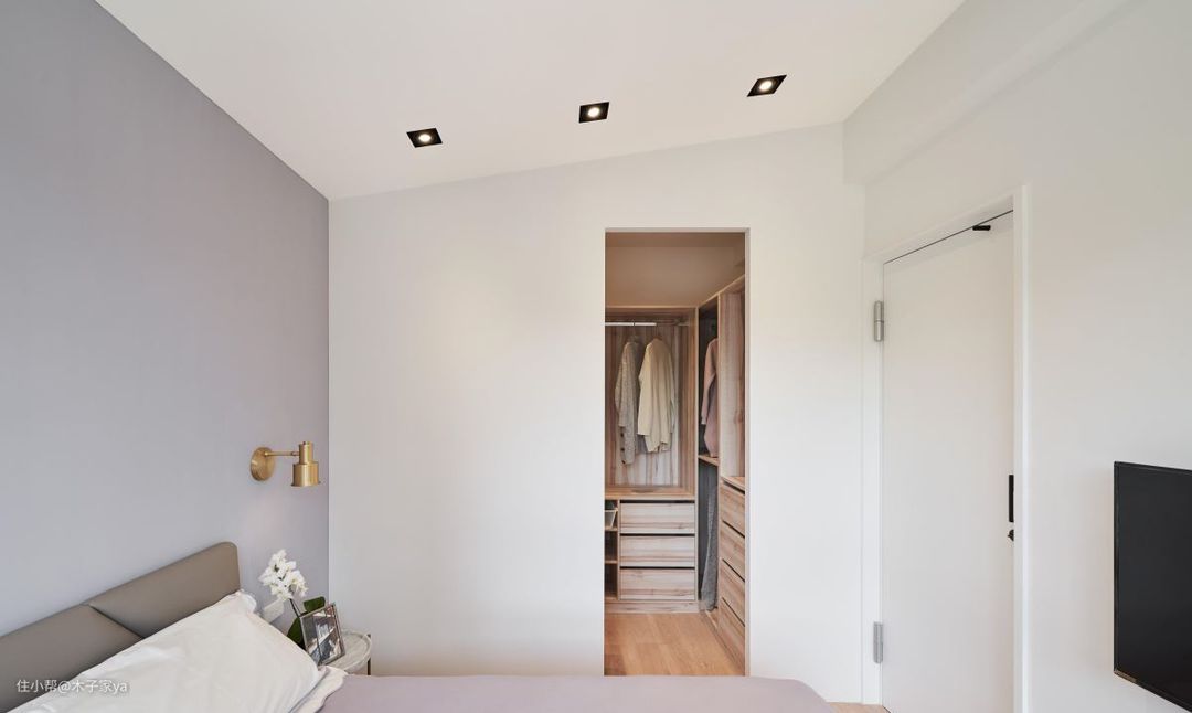 主卧巧妙做了个大型衣帽间,储物能力也是很赞,基本上一年四季的衣物都可以整理在这里。