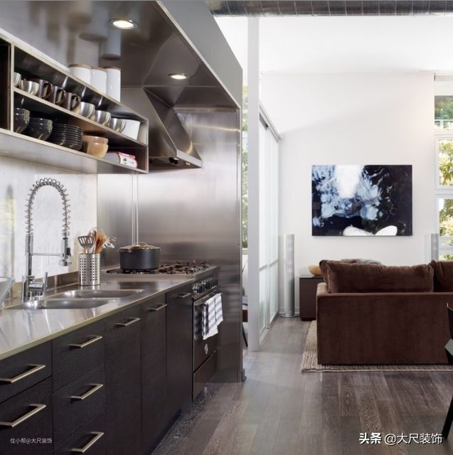 橱柜也是厨房使用频率很高的主材,主要选购的三大要点:橱柜使用动线流畅;台面和柜门耐用、耐磨;柜体稳固、环保、防水。