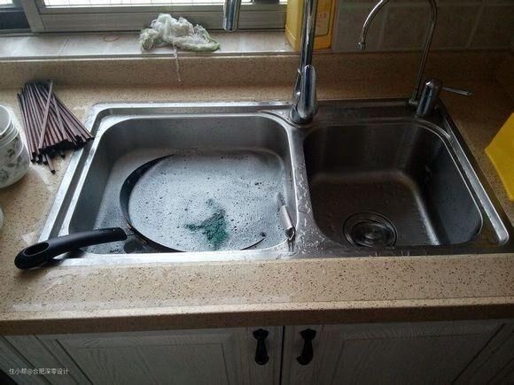另外,在水槽处设计这样一个凹陷的平台,无形中也减少了你做家务的负担。在我们洗碗的日常中,洗一半再加清洁剂,难免会有水、有泡沫被带到灶台上面,从而你还需要擦一遍整个灶台,而它,根本无需你再做额外的清洁工作。