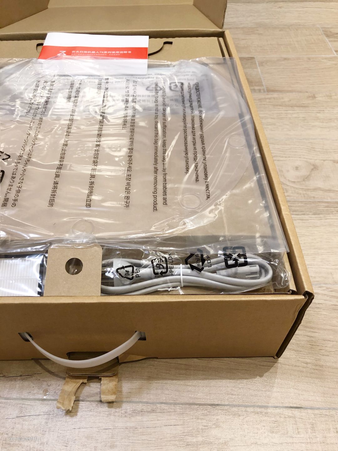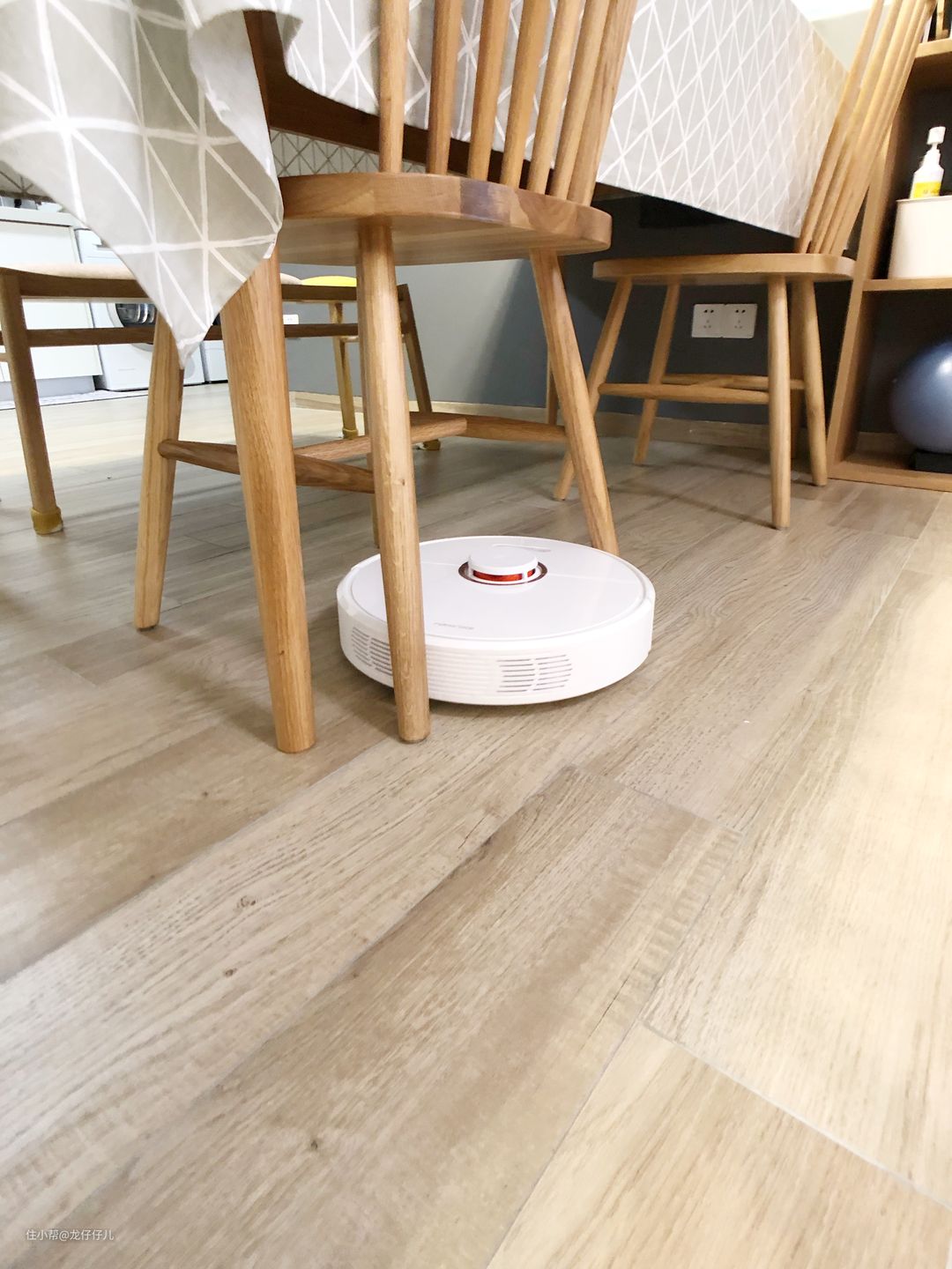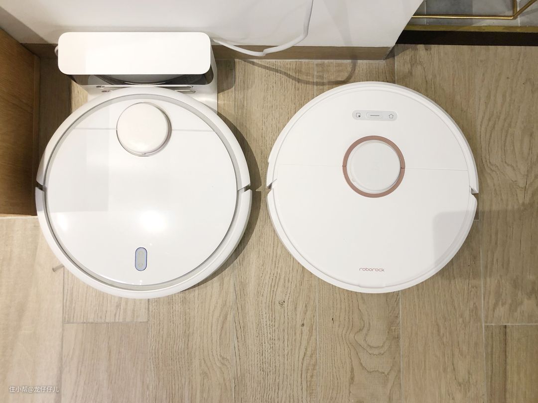 和前任----服役半年的米家一代扫地机器人"汪酱"合影。大小和风格都比较相近,T6云石白的外壳和玫瑰金的配色,和各种家居风格都很搭配。以及,白色真的不显脏啊,米家一代我也是用了三四个月才想起来擦一下外壳的灰。