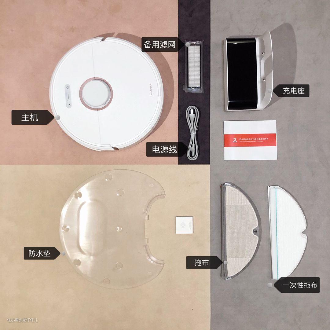 我,一个嫁给了处女座的处女座,996党,经常出差,但是对于家里的卫生要求非常严格,买清洁工具的乐趣胜过于买包包鞋子。去年双十一,为新家添置了一个米家一代扫地机器人,并取名"汪酱",聪明又能干的它完胜以前用过的某品牌扫地机器人,成为家中最勤劳的崽,戴森V8和花王静电拖把在扫地机器人(和懒惰)的面前变得几乎没有用武之地。"汪酱"服役大半年下来,总体来说非常满意,但是还是有一些缺憾。最近正好在考虑为父母和自己家都再买一个带拖地功能的机器人,就在我还在纠结买哪一款的时候,石头扫地机器人T6出现在了我的面前,这大概就是缘分吧。