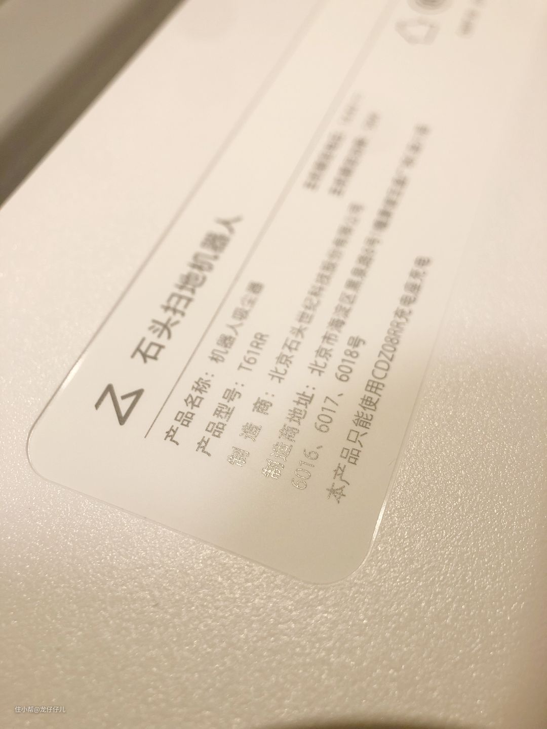 商品铭牌。由小米生态链公司石头科技生产,官方整机2年官方质保,使用更放心。
