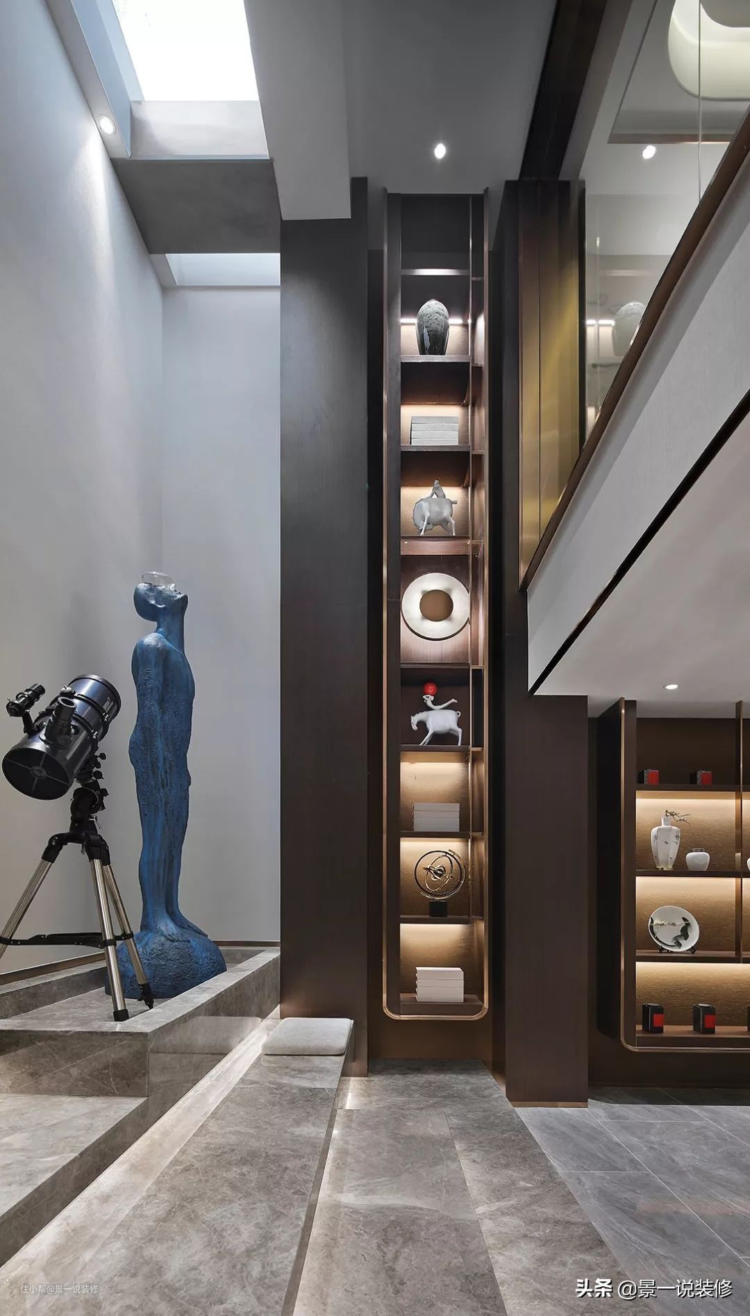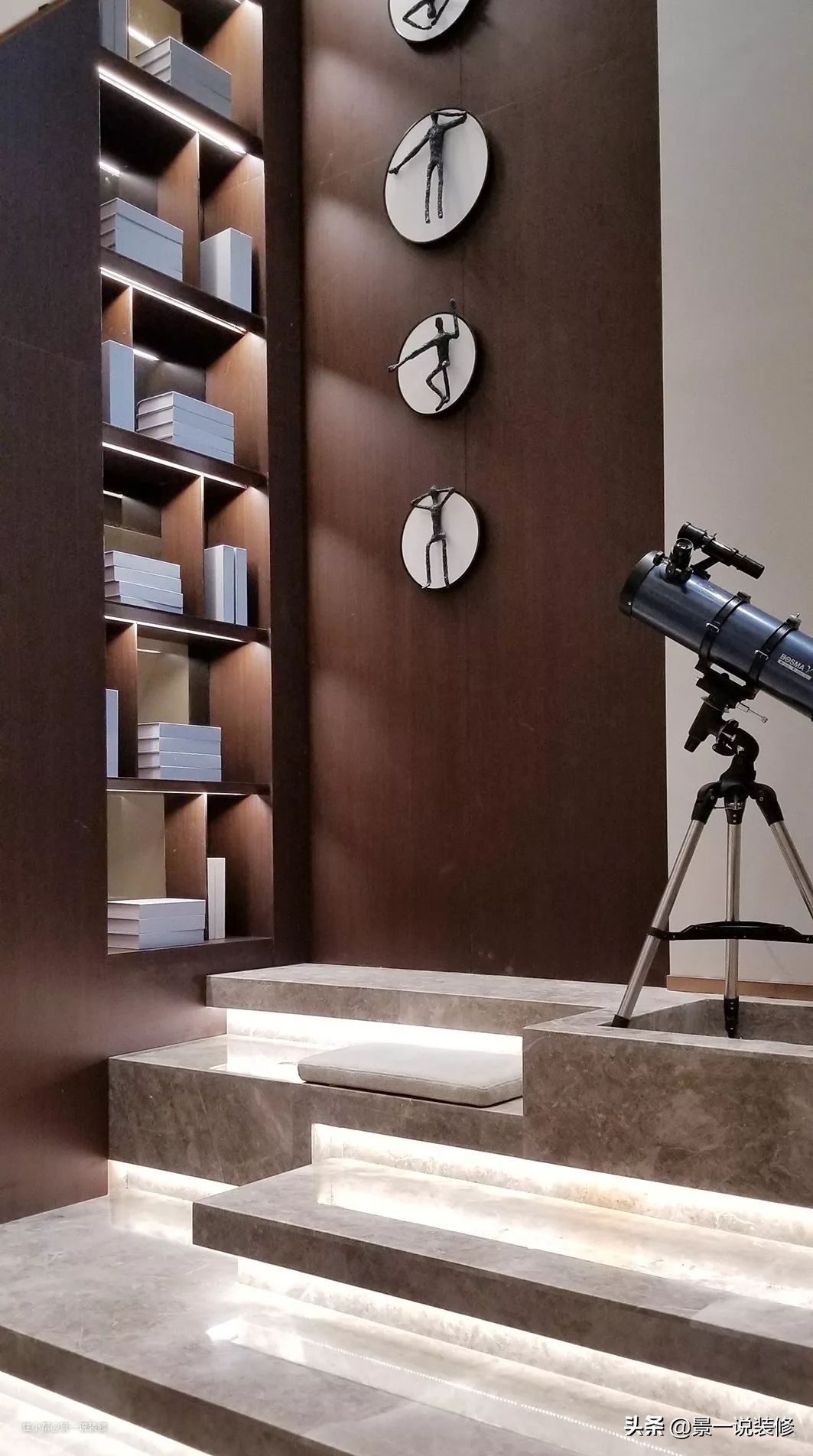 阅览区靠北侧采光天井,光线明亮,空间高挑,是一家人读书的地方,在这可随意拾阶而坐,还在此配有天文镜,遥望浩瀚宇宙,看灿烂星辰。