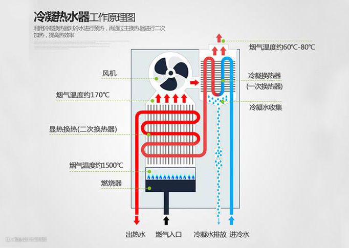不过有个缺点大家要知道,冷水在空气中直接和热的废气接触,会产生冷凝水,安装时要多加一根冷凝管,而冷凝管的排水一般都在室内,很头疼!