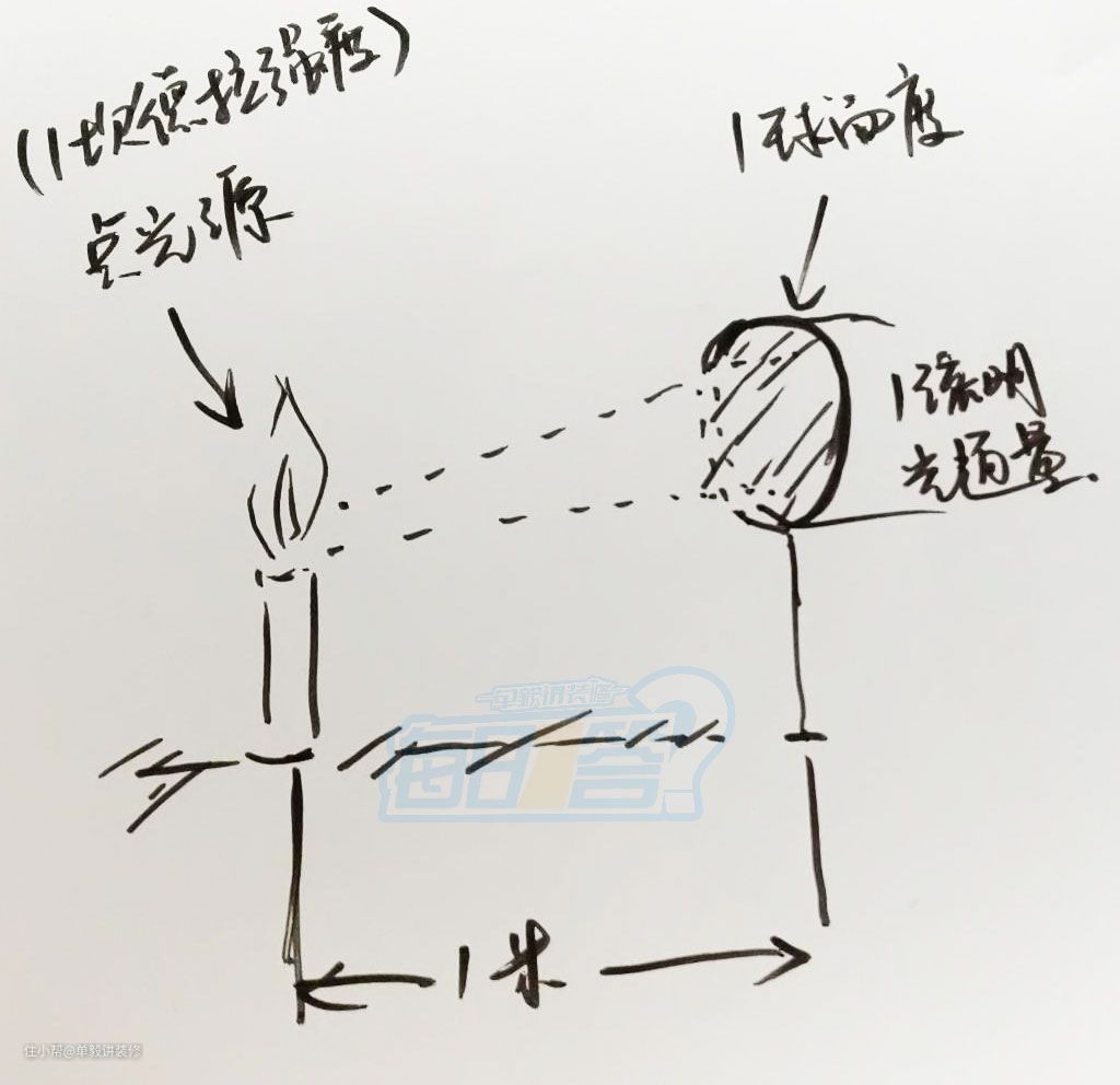 1坎德拉强度点光源,可以想象成1个烛光,1球面度可以想象成一个通道。1米距离之外,「通过的光的量」,就是1流明的光通量。