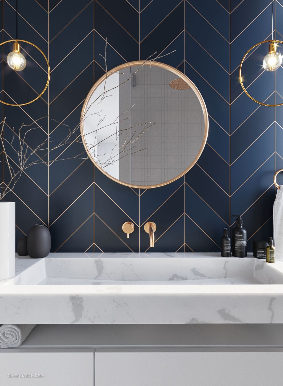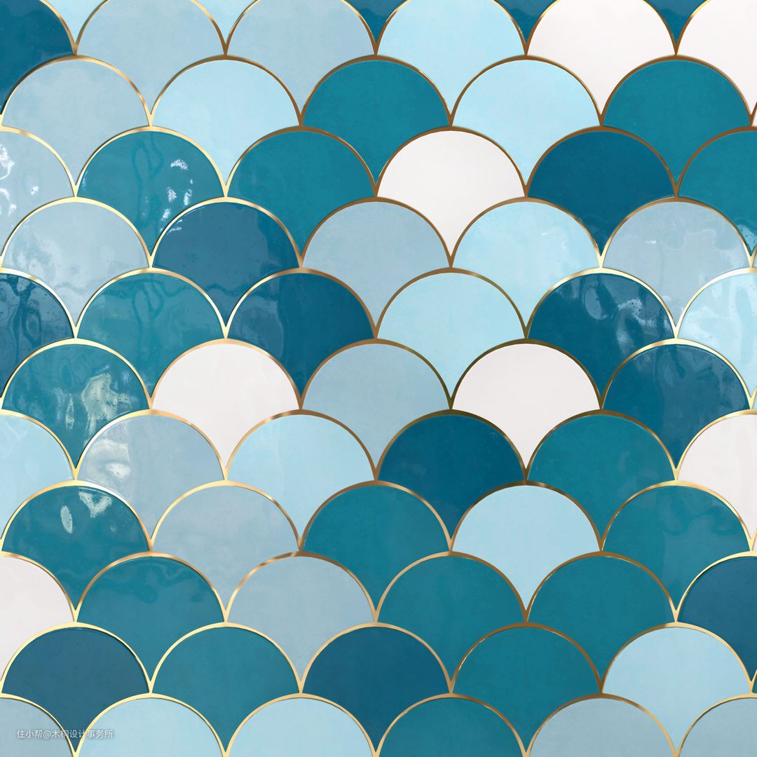 ⑤冷色系深浅拼花网红系列瓷砖,搭配“闪亮金”美缝
