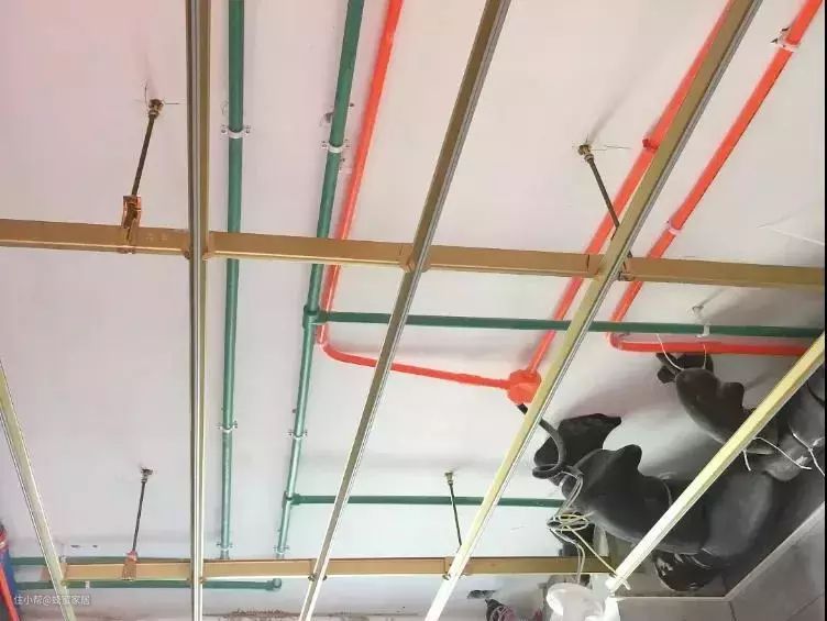 装吊顶前,先把管道和墙面擦干净,避免吊顶里面有灰尘。