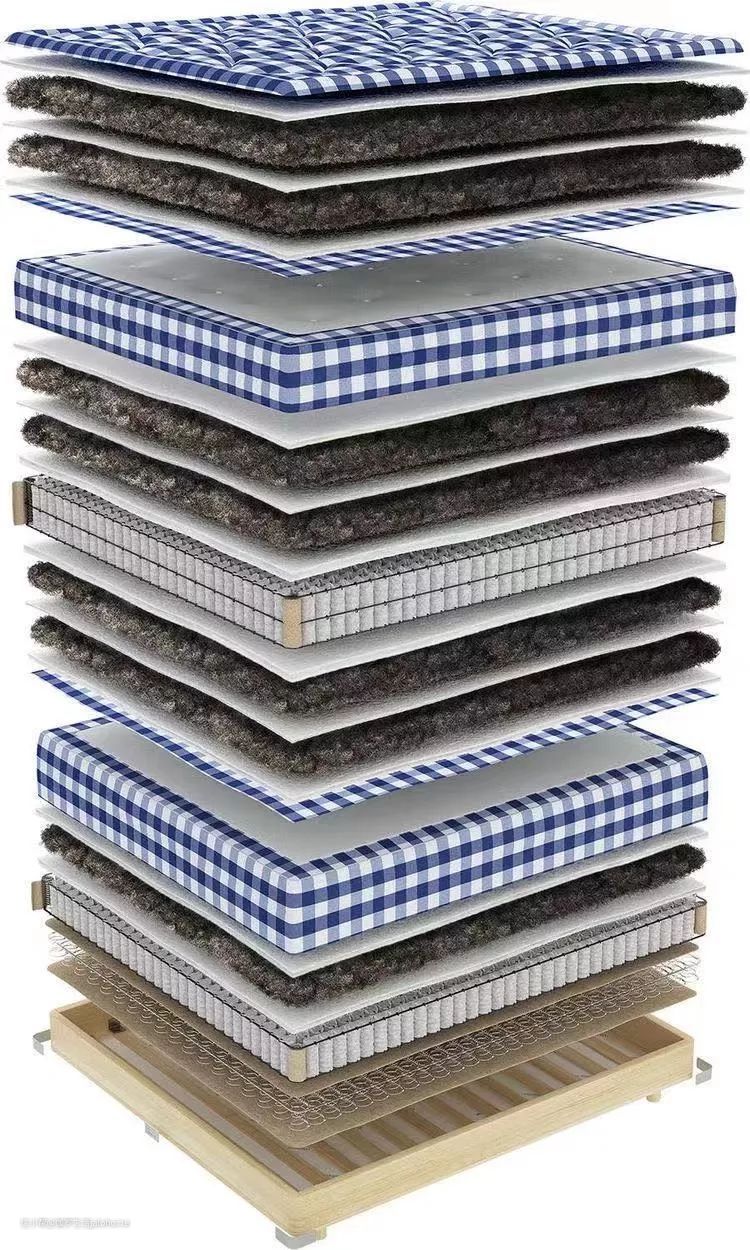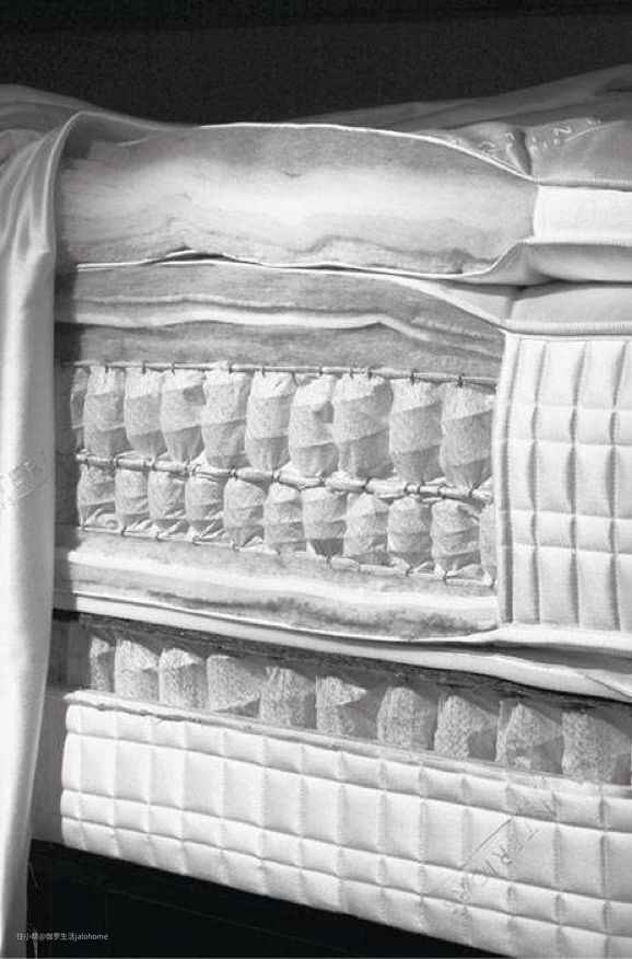 顶级床垫用料足有上百公斤,厚度30公分以上,内部的填充物和弹簧分为十几层,每层用料的种类数量各有差异。