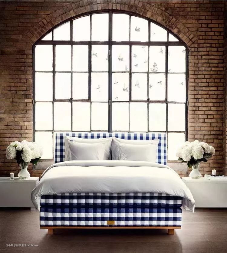 Hästens的Vividus,集最好的天然材料和精湛的传统手工艺于一体,使用 210 公斤天然材料,耗费320 小时手工制作。蓝白格纹布料是Hästens的品牌标志