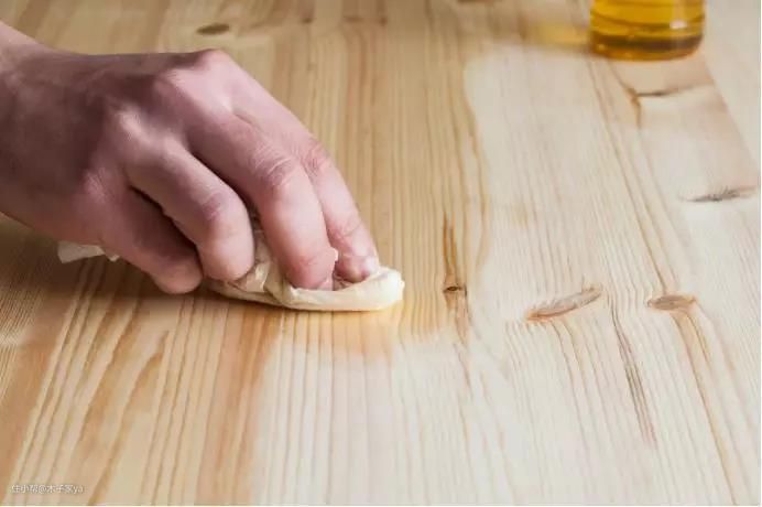 木蜡油渗透进去木材,并且里面的蜡成分会阻止液态水渗入木材中,增加实木表面的硬度和光泽度。经过木蜡油处理的实木会凸显天然的纹理,触摸上去会有类似摸到实木肌肤般的触感。木蜡油无法遮住实木的丑,比如结疤等,甚至会加深木材本身的色差。不过很多人就是喜欢木头天然质感纹理,甚至木头里面的结疤或虫蛀等,都是被追求天然的人喜爱。