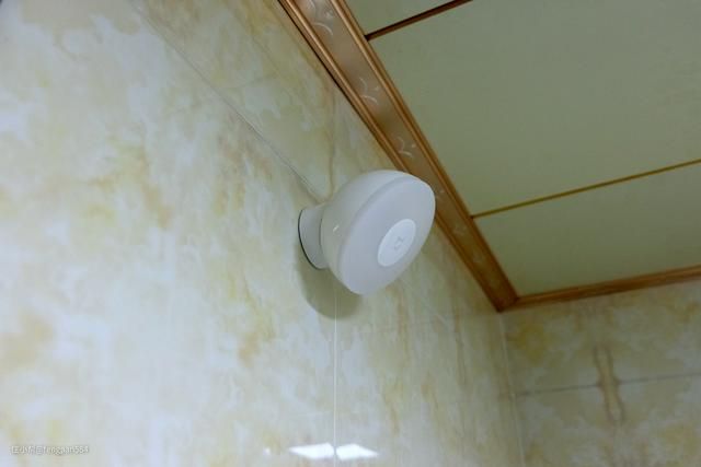 2800K的暖黄光,用于卫生间很合适,家里的亮灯开关是在室内的,安装好小夜灯后夜间入厕不用再伸手开灯了,要方便不少,这是开灯后实际的光照效果▼