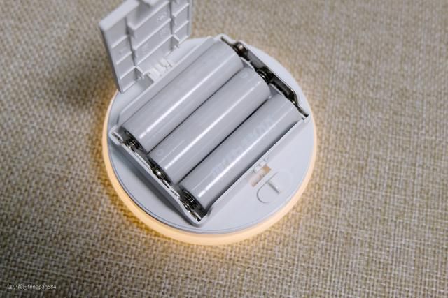 电池仓的上盖是卡扣的固定设计,打开/关闭方便,安装上附赠的3节5好电池就会亮灯,灯体上没有电源总开关,采用感应式的亮灯方式,在旁边的实体滑钮键是控制灯光亮度的,分别了低档和高档▼