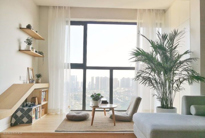 2)防湿防晒:很多植物喜欢潮湿的环境,飘窗打造成绿植角要注意防晒。选购的时候可以购买喜欢阳光的植物,比如月季,石榴,菊花,水仙,荷花,向日葵,太阳花等。或者加一个窗纱挡挡阳光,不用担心植物被阳光晒坏了。