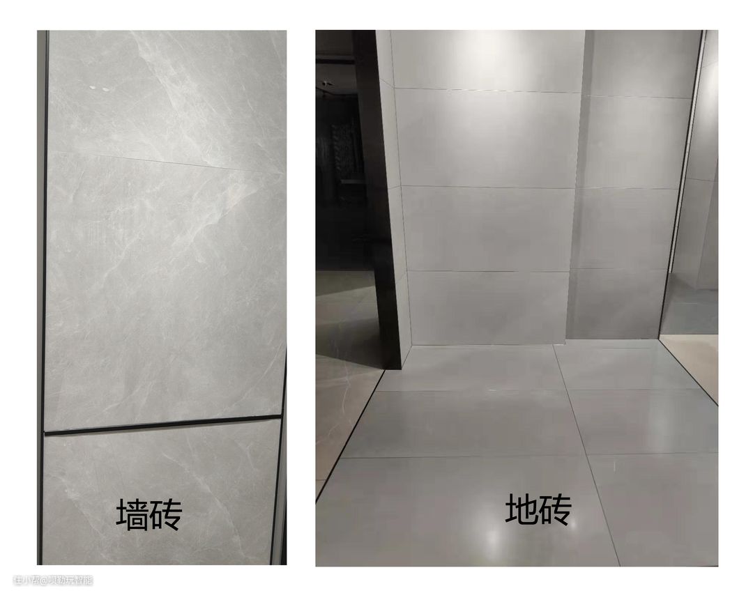 地面及墙面:地面和墙面都是选择的80*80砖,地砖上墙,地面裁成40*40,墙面裁成40*80。一般卫生间都是30*30或40*40的小砖,为了好找坡度,能保证水流顺畅。