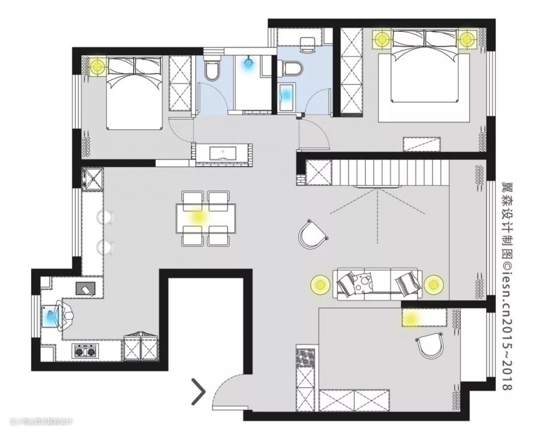 上图为调整后的平面户型布局图。从图上看:无论从收纳空间、居住动线、功能区域划分,都更符合一家人的生活起居。我们通过各个空间来为大家分析一下本案例的改动部分。