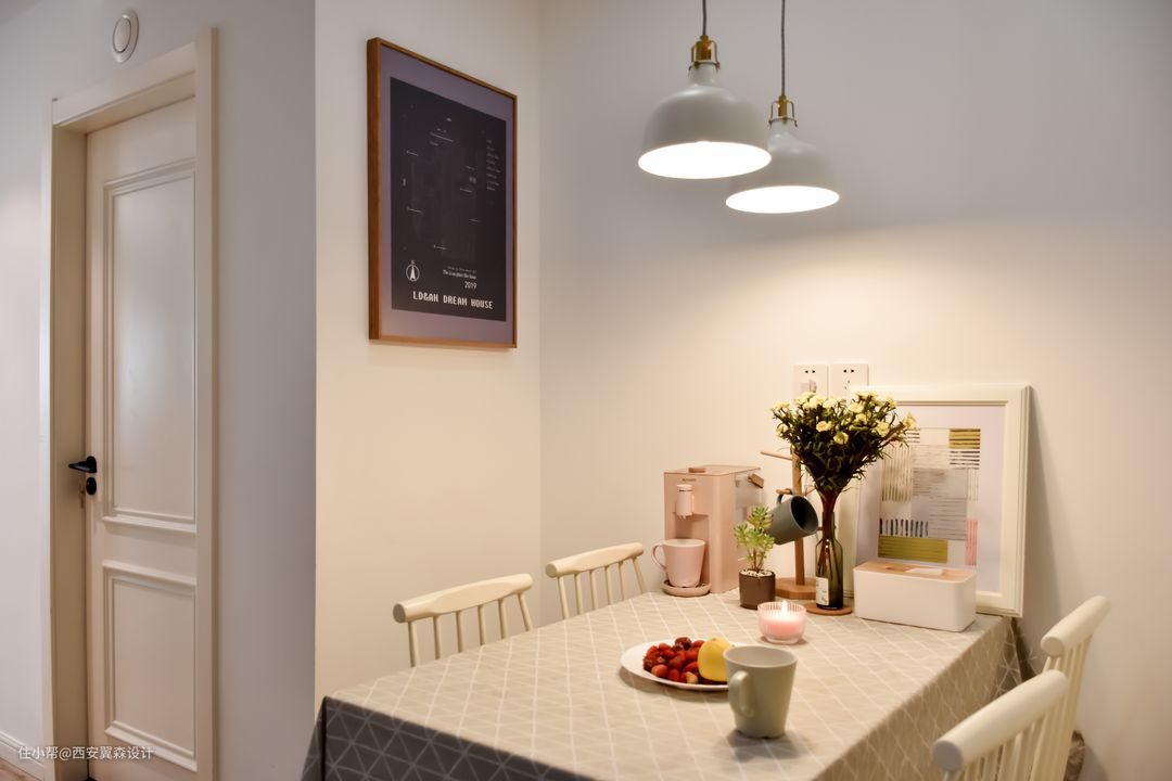 原本户型无玄关,进门处逼仄狭窄,为了满足日常使用需求,要在小小的空间里容纳餐厅与玄关两大功能。