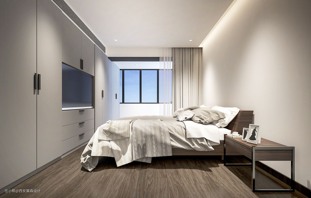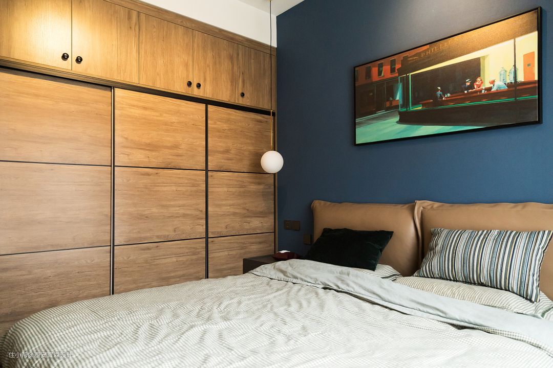 ▲主卧顶天立地的衣柜满足屋主衣物的收纳,电视机被巧妙的嵌入柜体,让一切看起来都是那么的契合。其实有时候我们想要的就是简单实用,而不是各种装饰的堆砌。