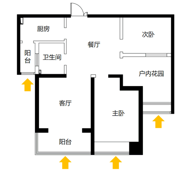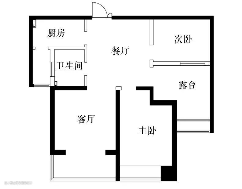 ③ 通透性欠佳,户型只有单面采光,和通风不能形成空气对流,且次卧墙体在通风上更是雪上加霜。次卧是一个面积又小采光又不好的房间。