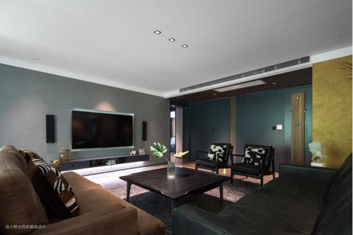 ▲客厅电视墙采用内凹安装手法,使整个空间更加整洁,隐藏电视的各种电源数据线。电视柜悬空处理并设置隐藏灯带,悬空比落地更有气质。