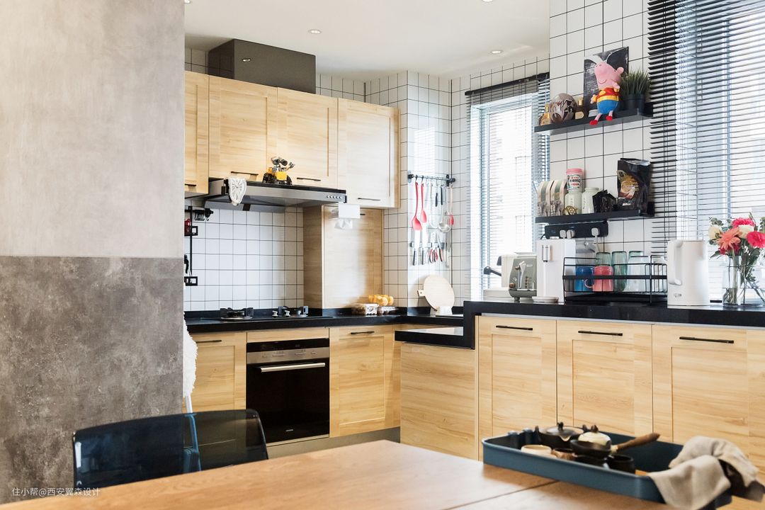 可以看到改动后的餐厨空间更加规整,家务动线也流畅很多,厨房操作台面向餐厅区域延伸,提高了空间的利用率。