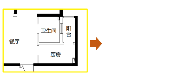 ② 拆掉厨房与客厅相连墙体,做开放式厨房;