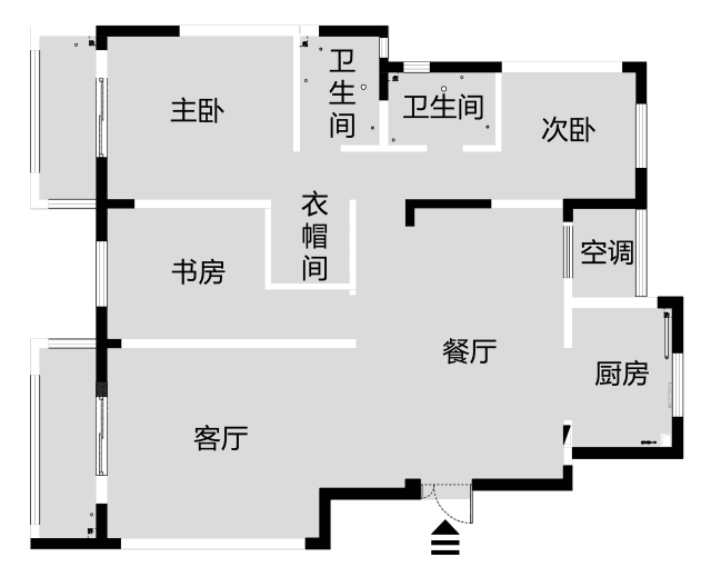 ②书房和次卧比较独立,无法做到功能性的合并,影响日常生活使用;