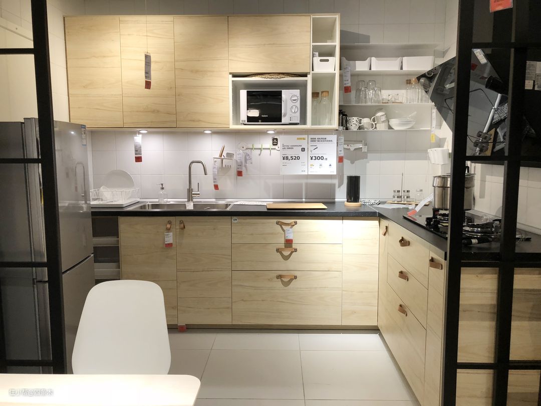 不过宜家橱柜是拼装的,有固定的柜子尺寸,相对来说没有定制橱柜那么灵活,这个就看个人选择了,如果你想简单一点,就直接用宜家的橱柜就可以了,如果你想要把空间利用更好,也可以选择其他牌子的定制橱柜。