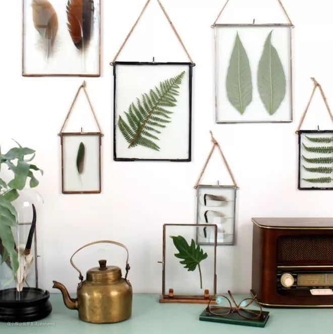 看!种了植物,基本满足装饰画自给自足。再让你们家阿姨上菜场买菜的时候拔捡点贝壳鸡毛,从老家带只旧铜铞,你们家装饰画可就齐活儿啦~