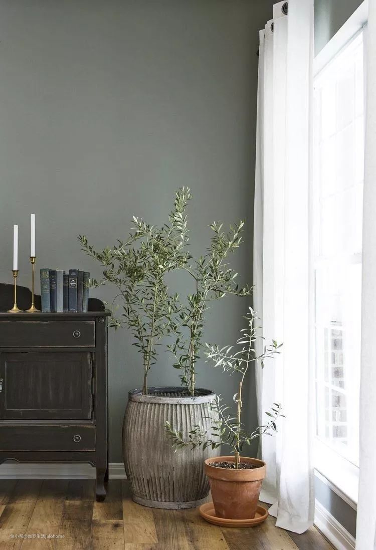 我们之前的文章,对橄榄树着墨不算少了。这种原产欧洲,广泛种植于地中海地区的植物,同样也非常耐旱。色调上与圆叶桉也有异曲同工之妙,叶子颜色呈深绿色,背面为灰白,饱和度低,是家用植物非常理想的选择。