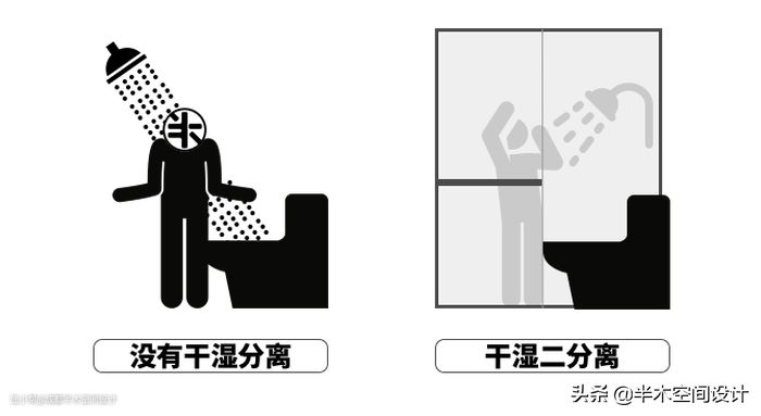 二分离通常是指「淋浴区」与「非淋浴区」的分离,这样也是最早被大家接受和实践的「干湿分离」方式。