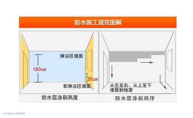 最后提一下防水的高度,卫生间有淋浴房的要将防水做到180cm,如果有浴缸,与浴缸相邻的墙面防水高度要比浴缸高30cm 。