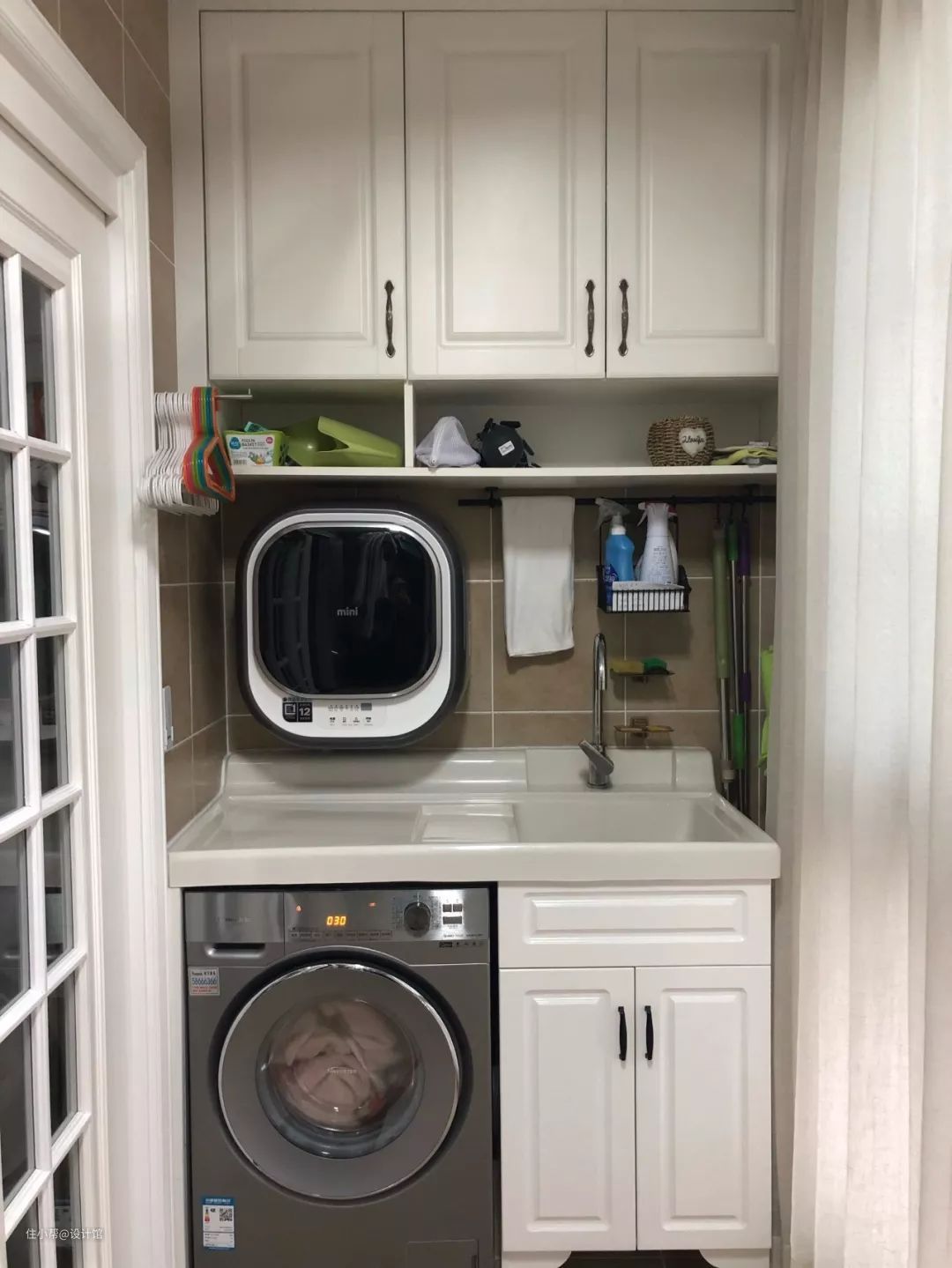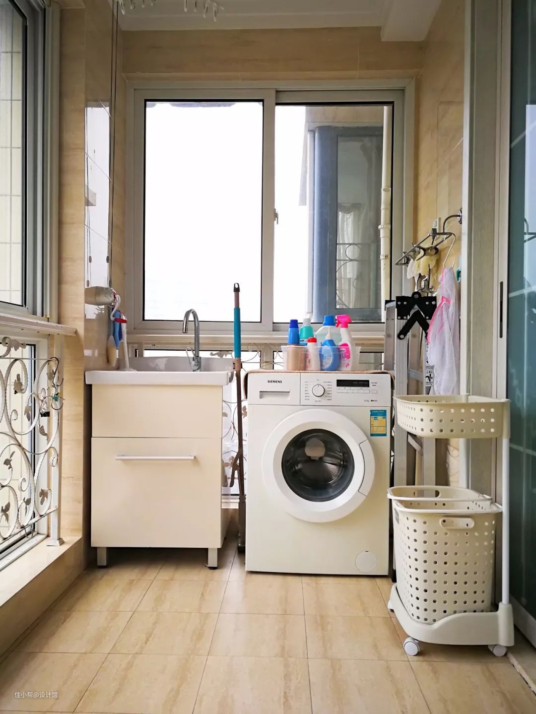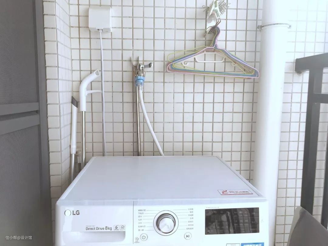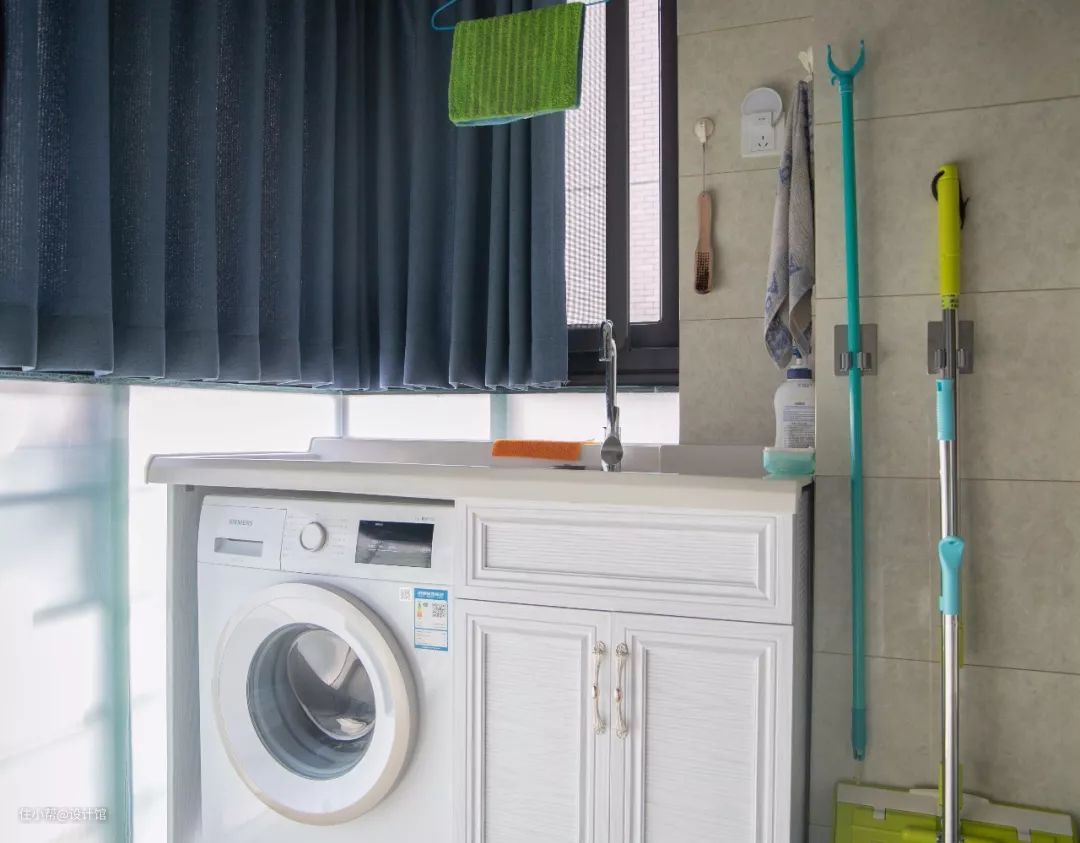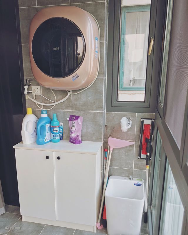 多数人家的洗衣机都是放在阳台里的,阳台的宽度一般都会有大于80公分,而普通家用洗衣机的尺寸则是60公分左右,这里洗衣机侧边就会留出20公分以上的间隙,拖把扫把放进去就刚刚好了!