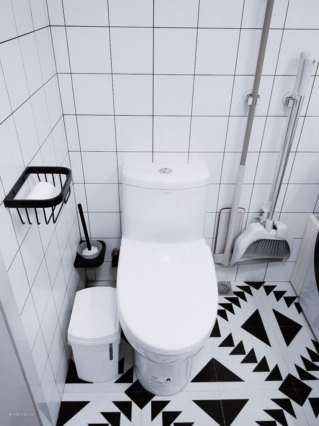 马桶后或侧边的位置,通常也都是闲置无法利用的,而拖把扫把的尺寸又是相对扁长,与马桶的布置刚好对应上了,拖把扫把就刚刚好可以卡进这个空间里面,让鸡肋的角落空间也得到合理的利用。