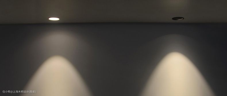 若是只是有淋浴房(淋浴隔断)没有浴缸的话,我们在淋浴房居中安装色温2700k左右的小瓦数筒灯即可。这样低色温和低照度的淋浴环境,是最能让人卸下疲惫、放松身心的。