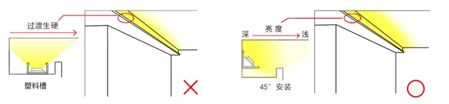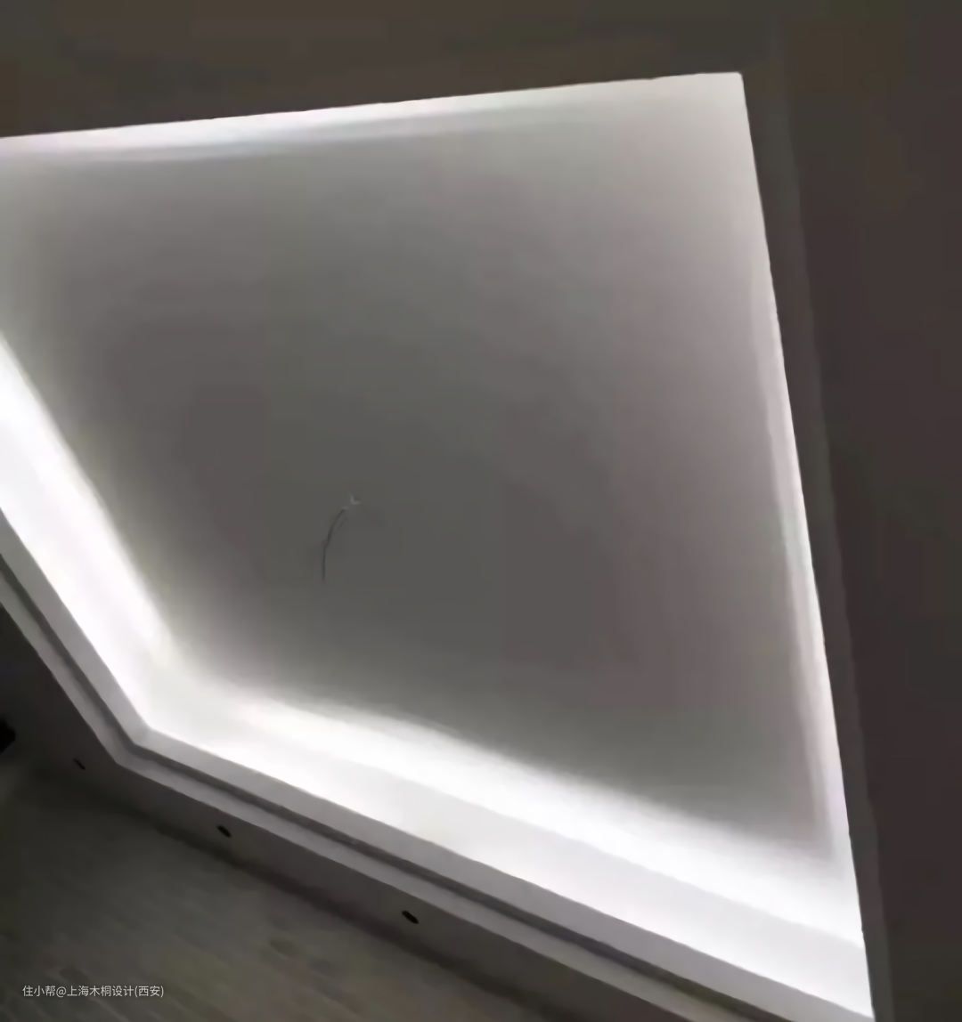 但由于工人的工艺水平不佳,这种吊顶方式装出来的灯带常出现光源截止线明显,或波浪起伏的情况。