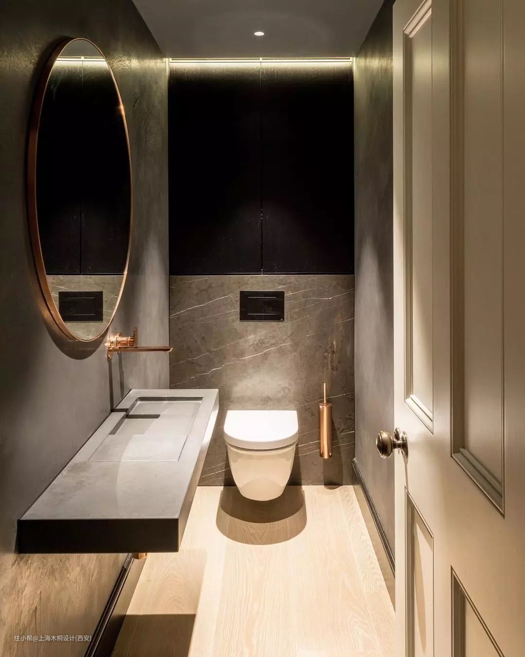 在此,建议在马桶前方或后方布置光源,这是最为舒适合理的。为了让光线更柔和,我们可以使用光束角大于60°的筒灯,或者搭配灯带来进行布置。