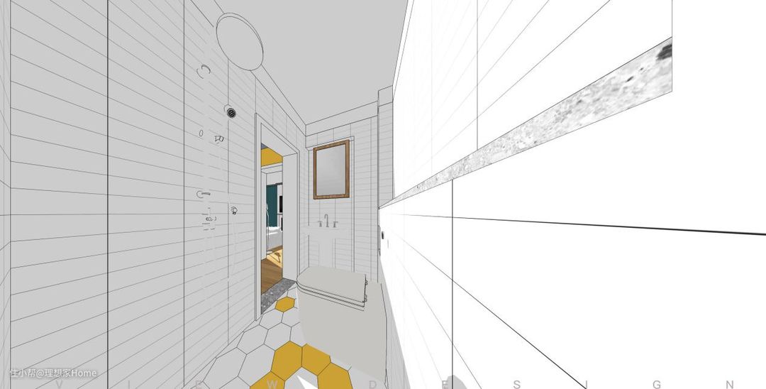 同时由于进入厕所的区域产生了变化,将洗手台的位置转移到原有门框的位置,几乎不产生额外走道浪费的问题,节约了较大的区域。