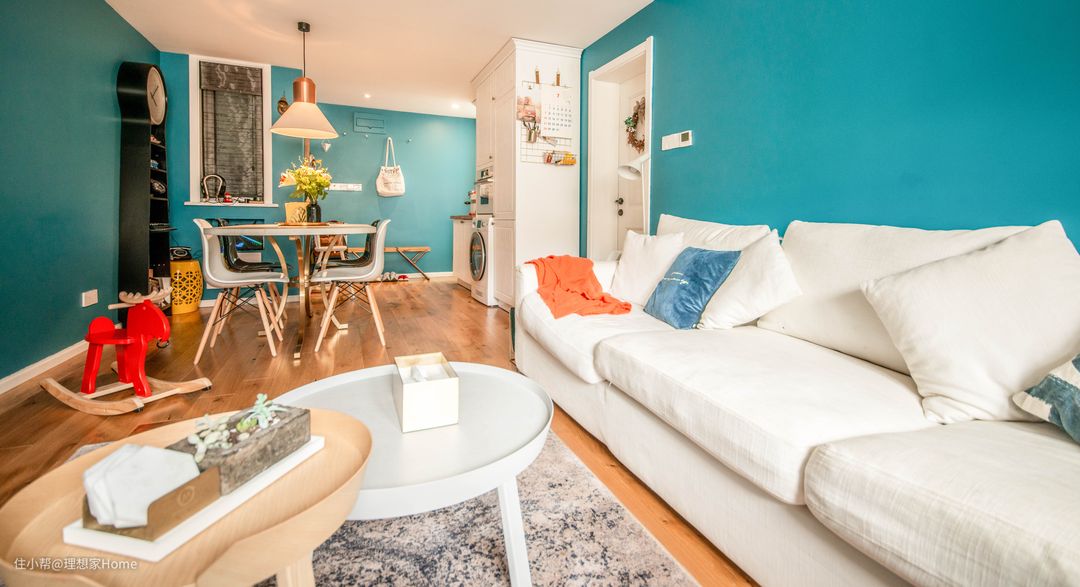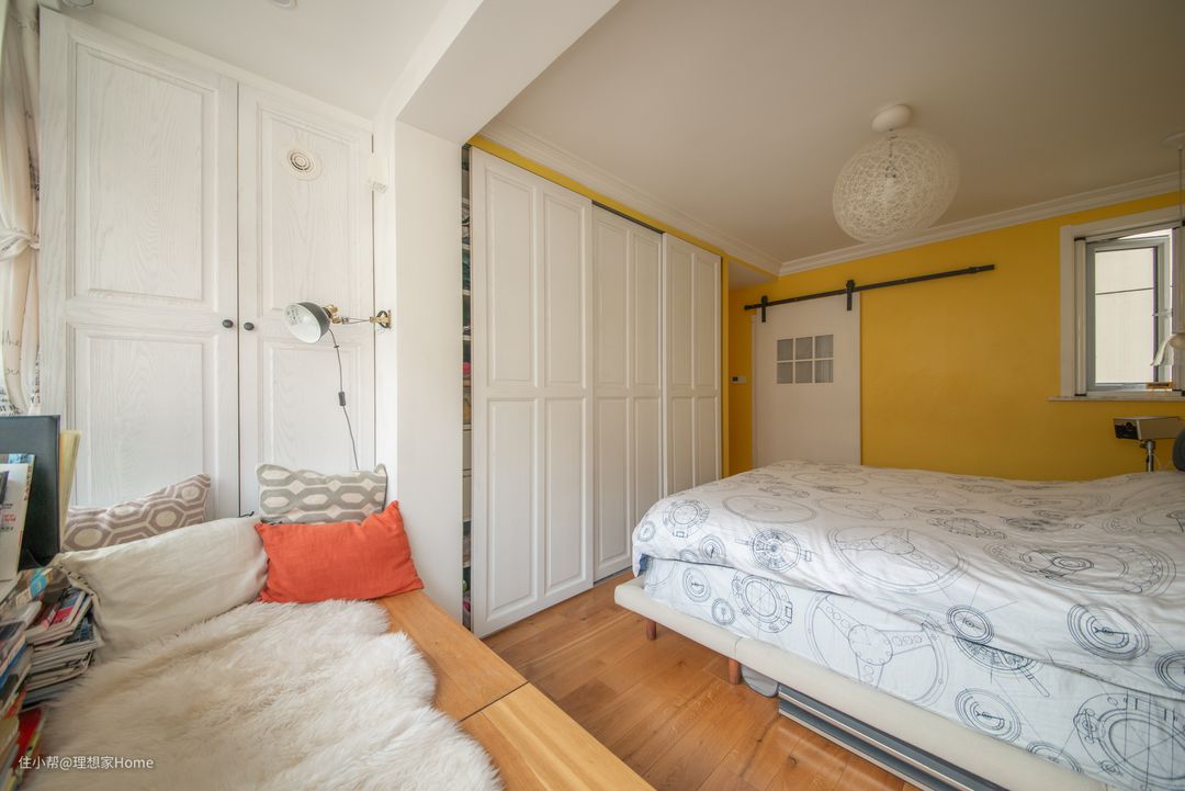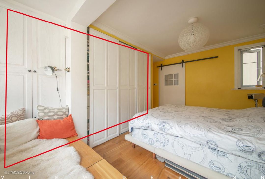小空间忌色彩杂乱。这种杂乱不仅仅是色彩多寡也包括了色彩本身的整体性。一个大面积白色要比多个零碎的白色更容易给人整体感,因此对于小空间的储物或者其他应更少的使用高低橱等家具,更多的应该化块为面,化柜为墙。