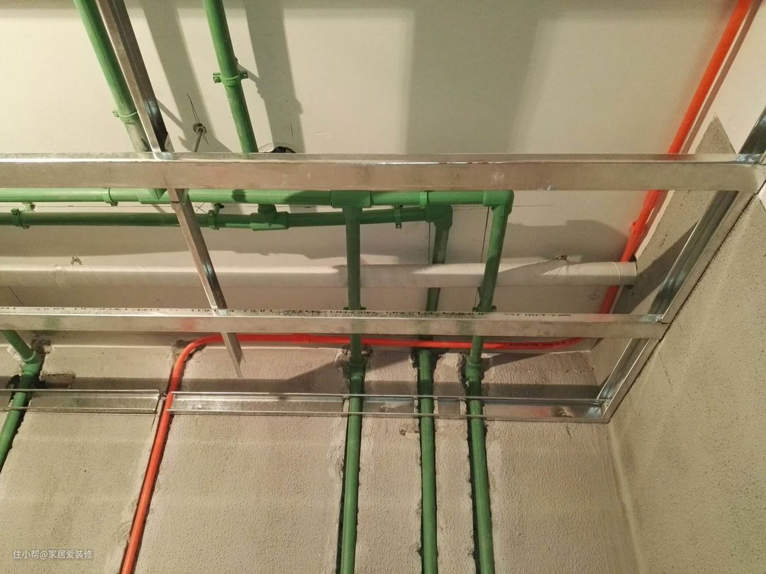 同样的道理,水管和电线都走顶,那么电线应该在上,水管在下,这样,即便水管漏水了,也不会带来用电的安全隐患。