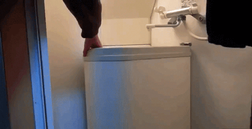 浴室的洗手台可以旋转移动,覆盖在马桶上面,就有足够的淋浴空间,并且防止厕纸之类的物件在淋浴时被弄湿。