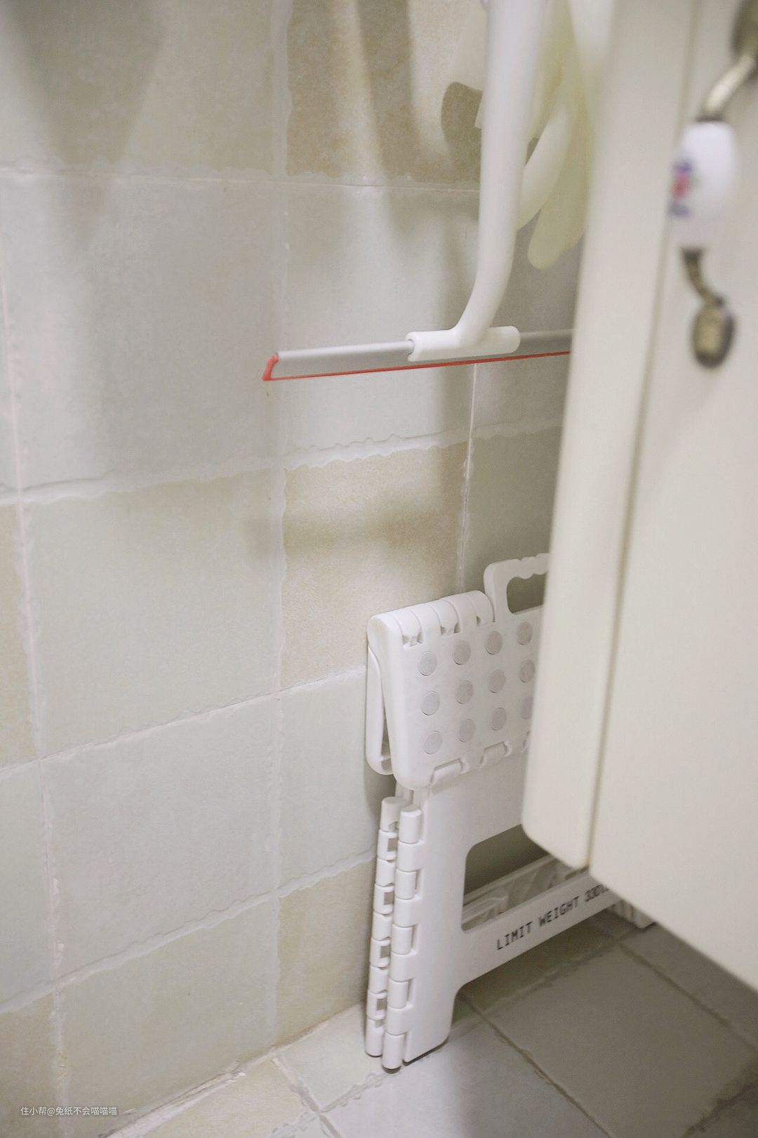 镜柜下面空间还能容下一个折叠小板凳,小板凳这种东西,说不出什么时候用它,但也少不了。