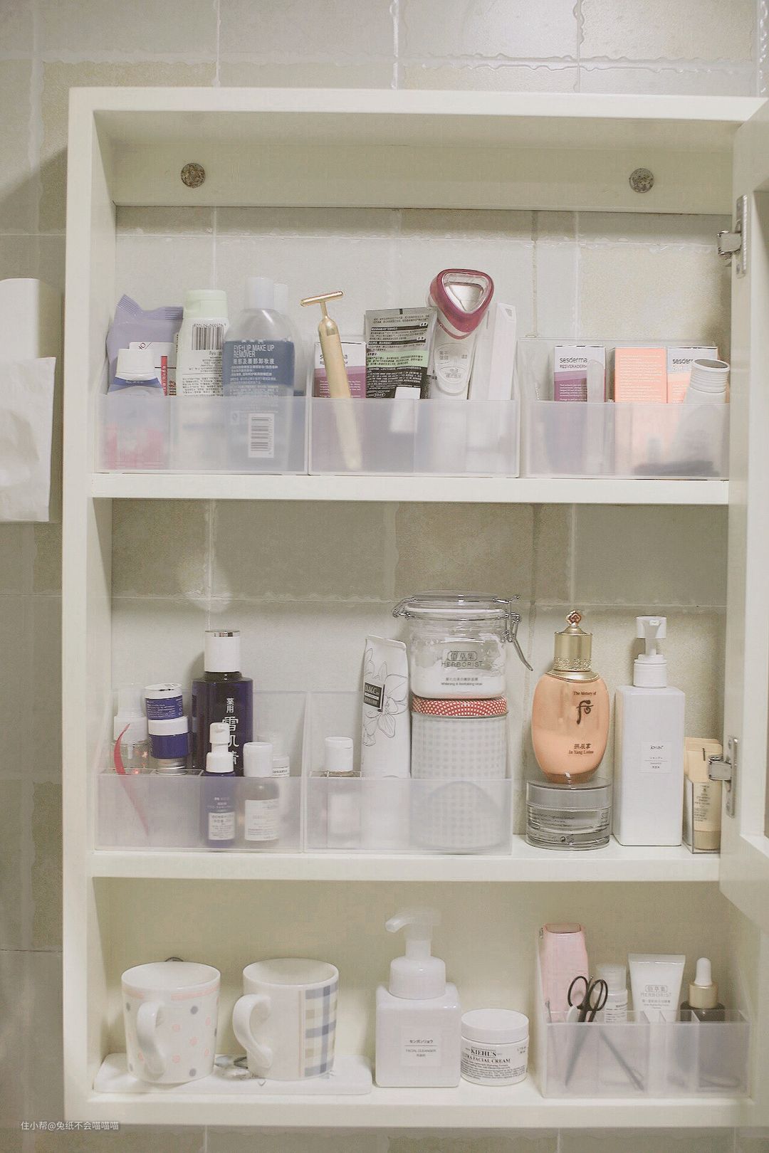 镜柜里面用收纳盒分类,再也不怕一开镜柜东西稀里哗啦的往下掉,整齐且容量更合理。