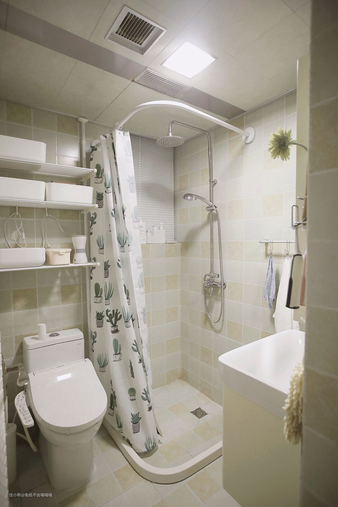 小卫生间真的更推荐使用浴帘,如果是淋浴房,门一拉上,在外面转身都感觉困难,而且浴帘打理方便,还能不时换花样。