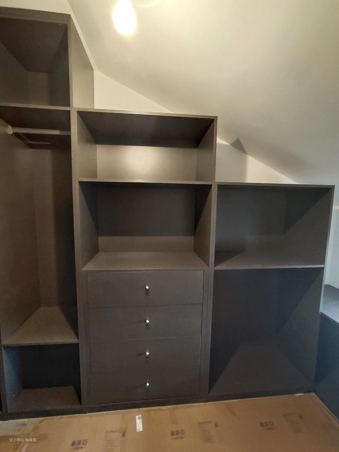 经验源于实践,家里正好有一件斜顶的房间,本来是用作储藏室的,这次重新装修决定将其改变为衣帽间。
