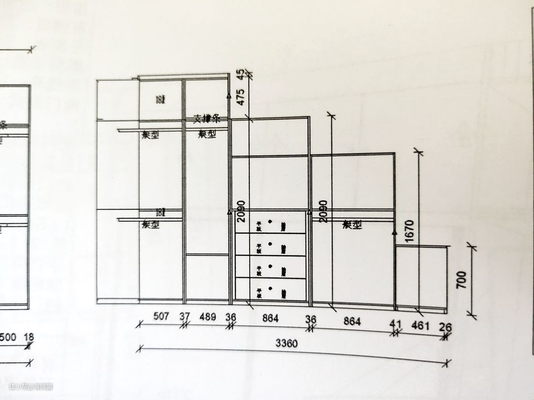 右边比较长的那块挂衣区是用来挂大衣的,毕竟长款大衣比较少,所以这块的部分设计的不算大,但还是要考虑到。