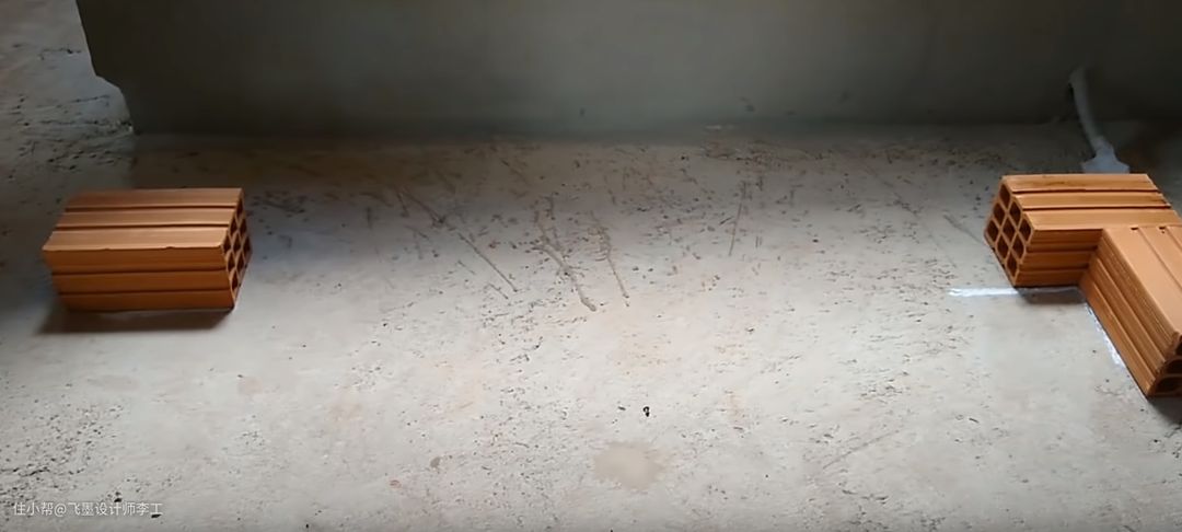 先确定3点位置,因为是L型的布局,先测量尺寸过后再利用粉笔画线,放上空心砖进行定位。