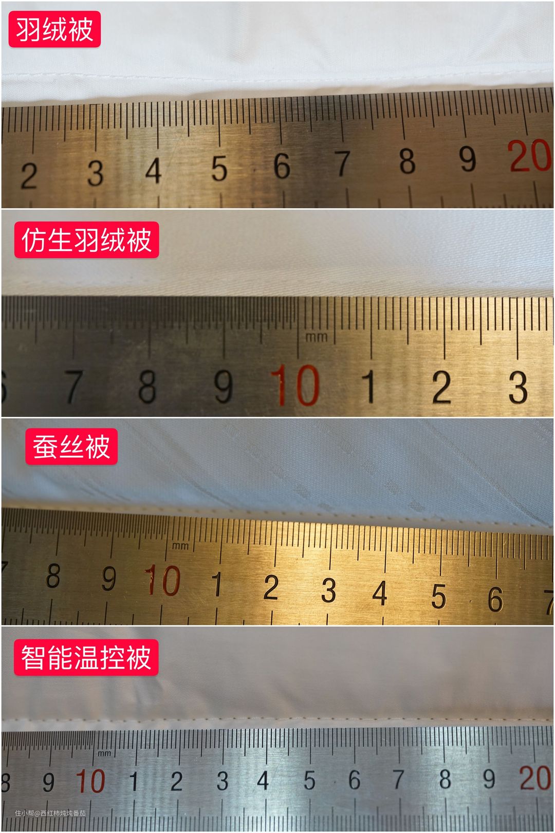 首先,我们将这四种不同材质的被子放在一起做个比较 ▲